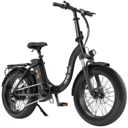 The EX6F Folding Electric Bike upgrades the EX6 with greater comfort, portability, and fit. Its UL 2849-certified 48V 14.5Ah battery offers up to 75 miles of range, powered by a 750 W peak motor. A low-step 15.7″ frame, adjustable handlebar and seat fit riders 4’9″–6’5″. With 20×4.0″ fat tires, hydraulic front suspension, 110 lb rear rack, and a 3-point folding design, it’s built for travel and everyday rides.