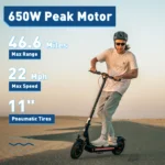 The Hiboy Max Pro is built for riders who want extra power, comfort, and range. Equipped with a 500W brushless motor (850W peak), it reaches speeds of up to 22 mph and handles inclines with ease. The large-capacity battery delivers up to 46 miles per charge, making it one of the longest-range scooters in its class. With 10-inch pneumatic tires, dual suspension, and front + rear braking, the Max Pro ensures a smooth and safe ride. Plus, its foldable frame and smart app controls make commuting and weekend rides simple and convenient.